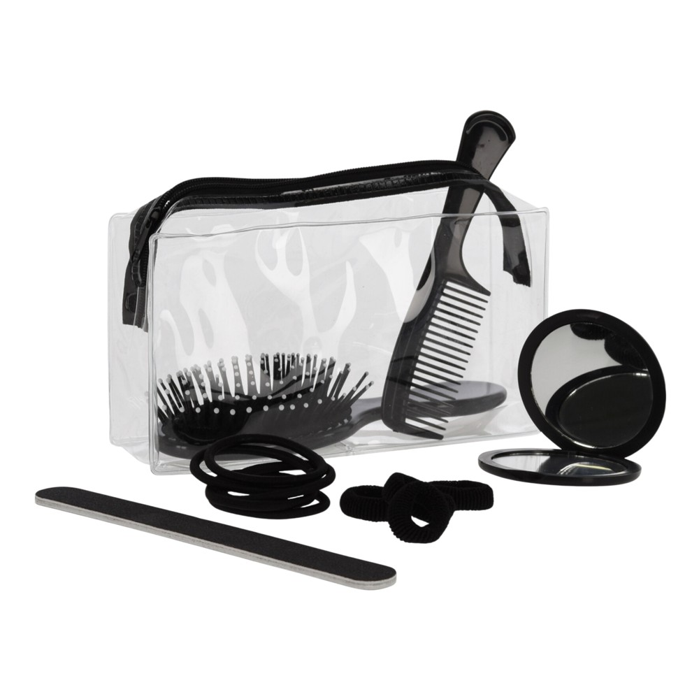 Cosmetic bag set with accessories, transparent/black, mixed, 1 pack