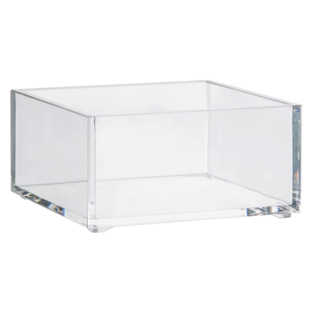 Simple square-shaped storage case, with transparent polystyrene material. It is used to keep makeup and accessories organized and easily accessible. This product is designed to meet the storage needs of any room in the house and make the most out of limited space, which makes it suitable for travel.