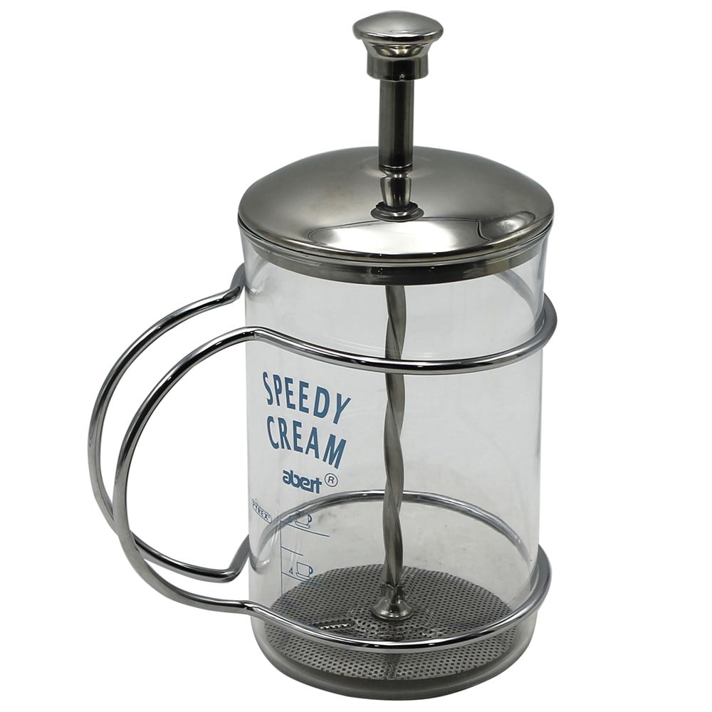 For use in the preparation of cappuccino, milk shakes, coffee cream, scrambled eggs etc...Made of 15/10 stainless steel material and glass and is easily activated by pressing the knob downwards which automatically returns to the starting position by itself. Thanks to its double motion rotating system , combined with vertical translation, the special creamer device is designed to grant excellent results in a very short time. The transparent pyrex jug allows you to easily see the froth level. It is easy to clean because the handle and lid can be easily removed from the container to be cleaned.