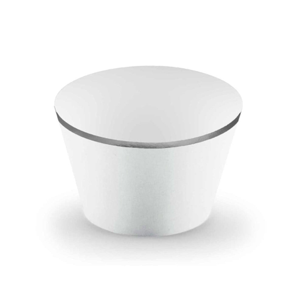 Cupcakes wrappers for party, white with silver metallic edges, 4.8x7.6x4.6 cm, 6 pieces, 1 pack
