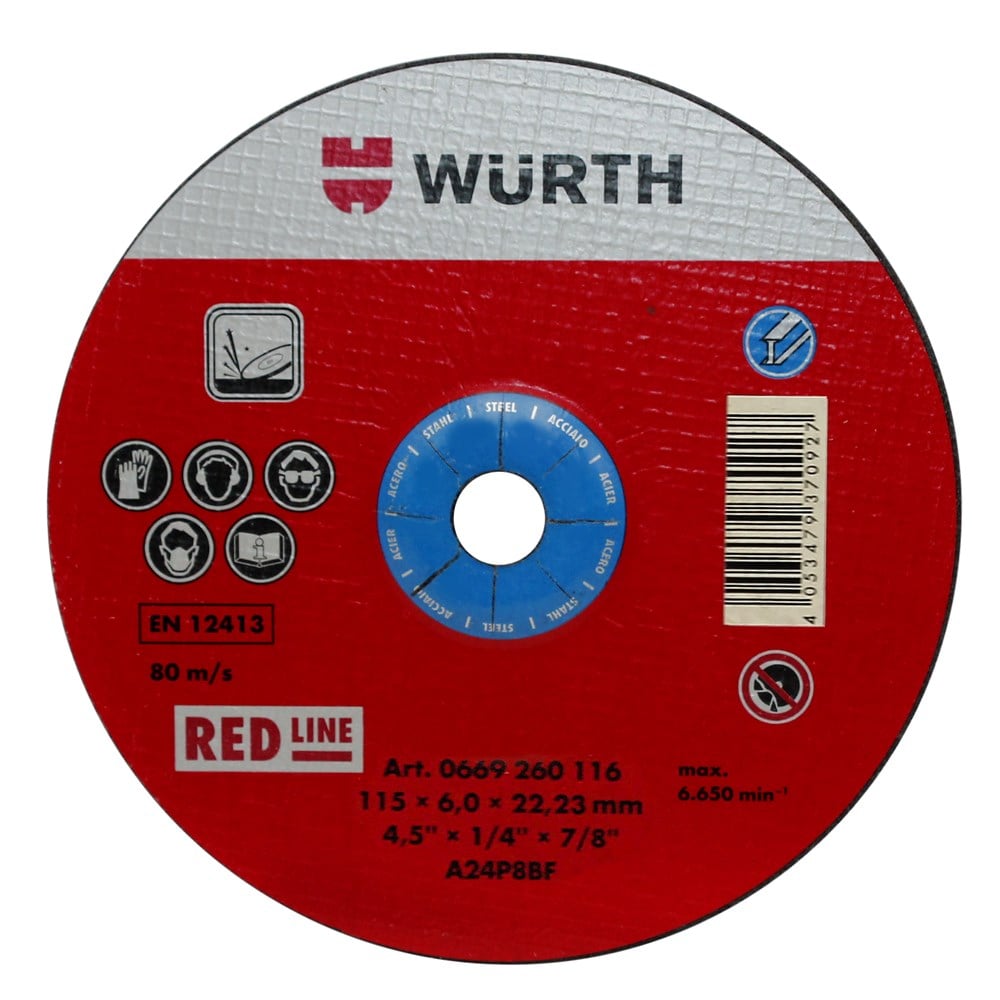 Cutting disc, Wurth, Red Line, 115x6.0 mm, steel