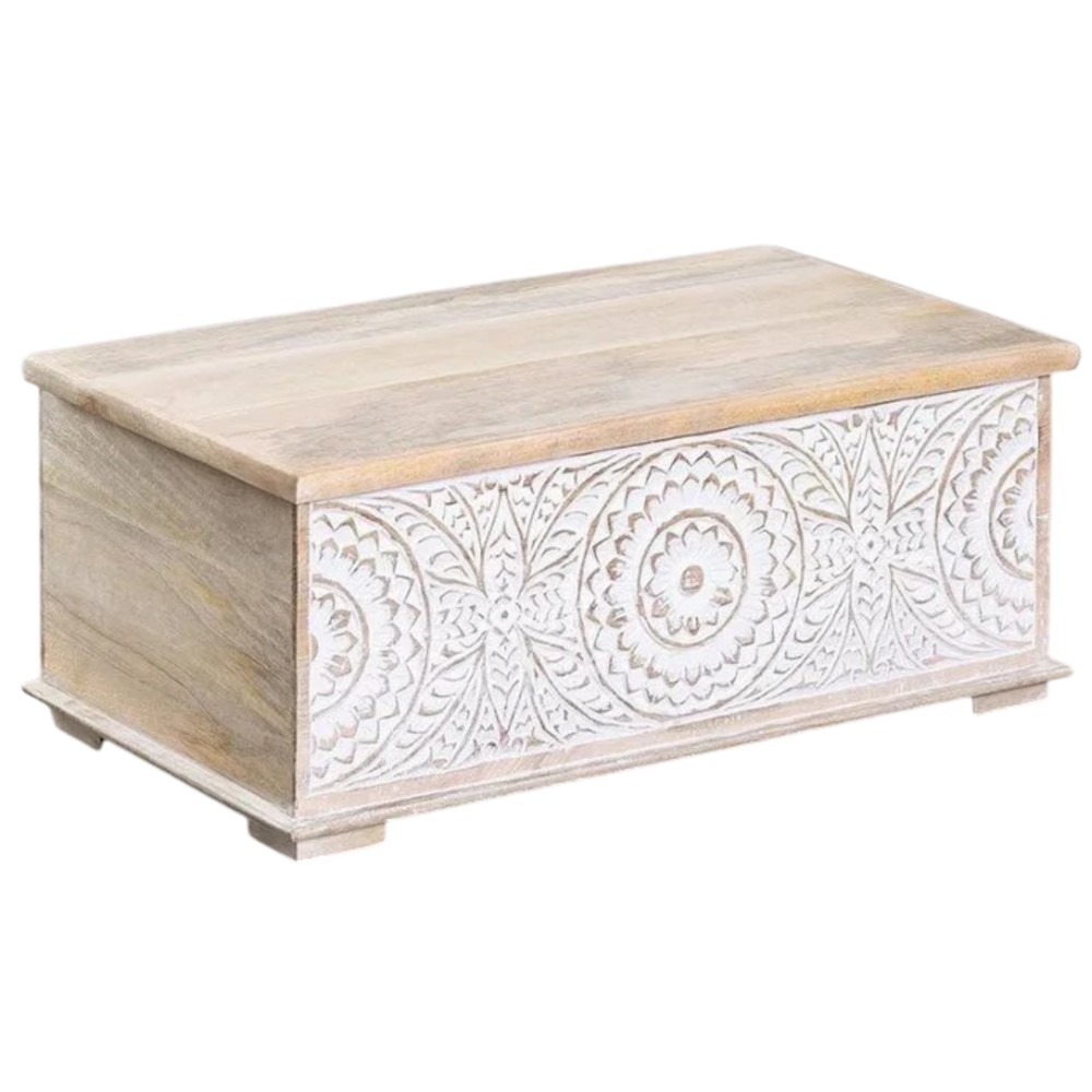 The white wood material decorative chest is an excellent choice to add a natural and beautiful touch to your environment. With dimensions of 78x42xH46 cm, this chest offers enough space to hold and organize your valuables. This chest is suitable for placing in living rooms, bedrooms, lounges, or even other surface areas to store and display items in an organized and attractive way. It brings an attractive change and an additional stylistic element to your environment."
