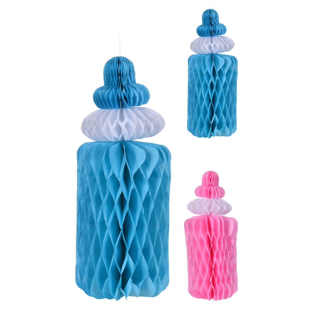 Decoration bottle, "Party", baby shower, blue-rose, 8x33 cm, 1 piece
