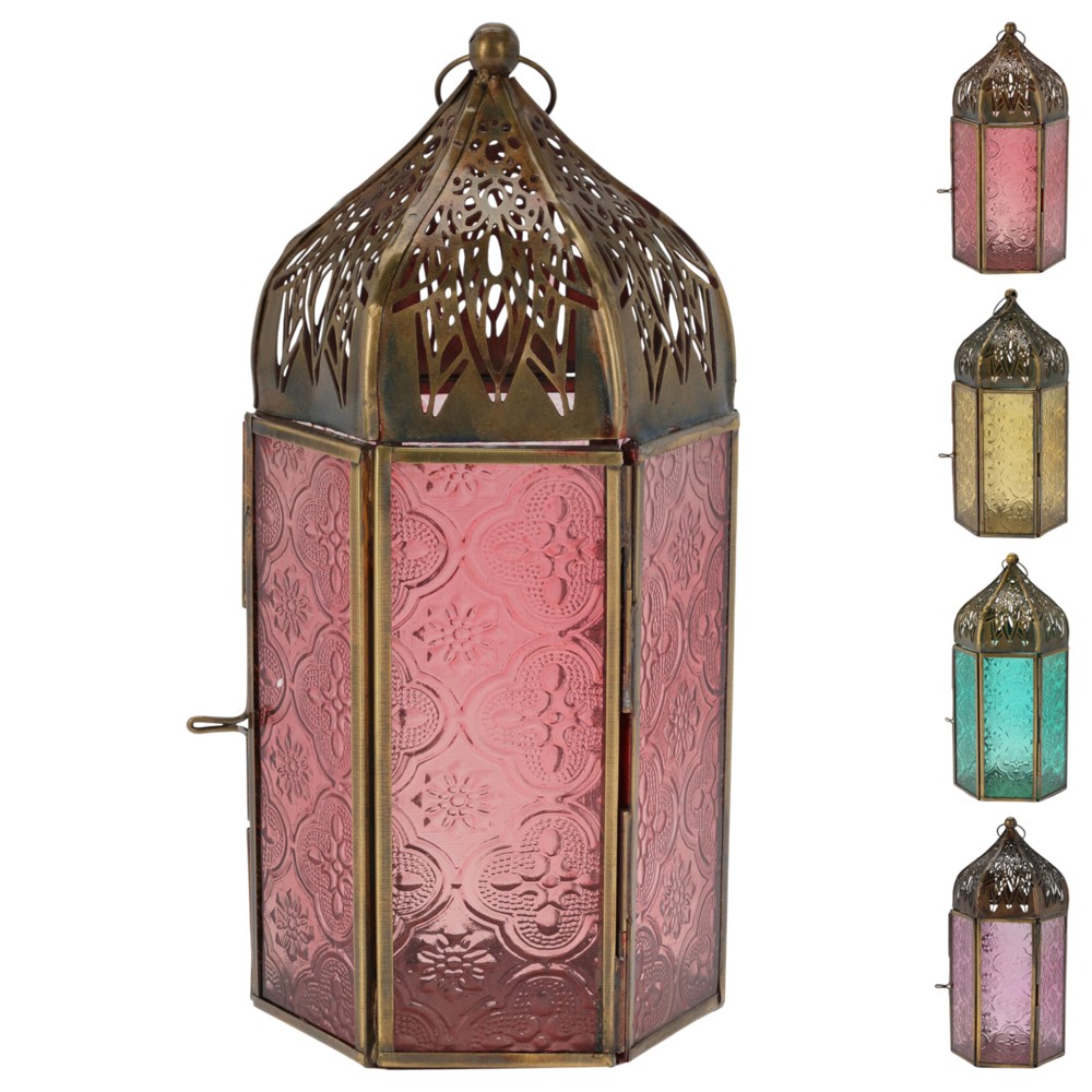 Decoration lantern, metal, glass, various, H20 x L10 x W9 cm