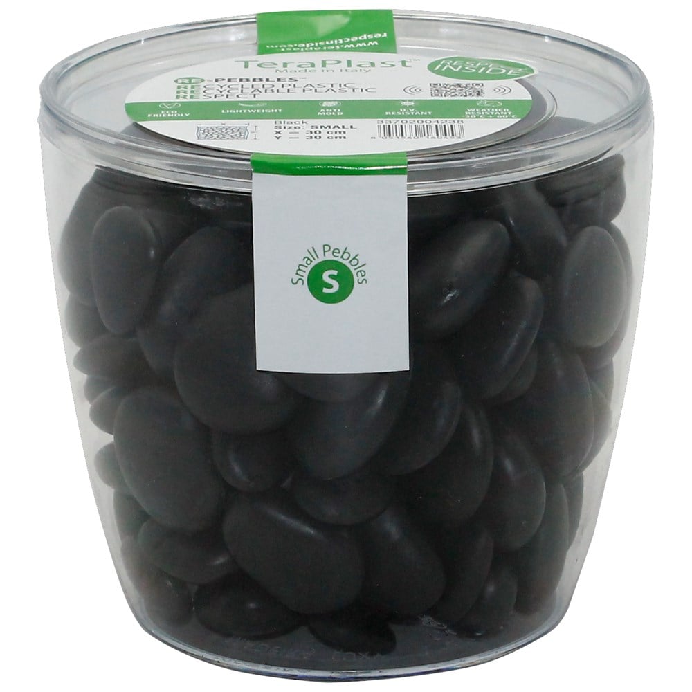 Teraplast recycled plastic pebbles break new ground on the decorative front. Choose a new, environmentally friendly way to adorn your surroundings. RE-PEBBLES in numerous different shapes and colours can give a fresh twist to pots and add a wonderful decorative touch to terraces, gardens and other settings. Lightweight; - Ecological: Non-toxic and recyclable; - Odourless; anti-mould; easy to wash without detergents; Weather resistant (-30°C to +60°C); eco-friendly; UV resistant: colour-fast dyes.