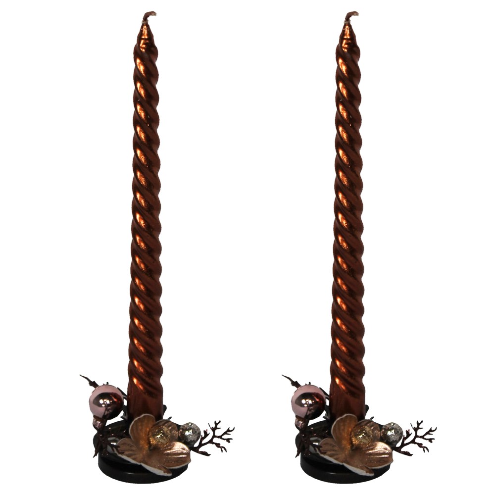 Decorative candle, paraffin / metal holder, cooper, H25 cm, 2 pcs