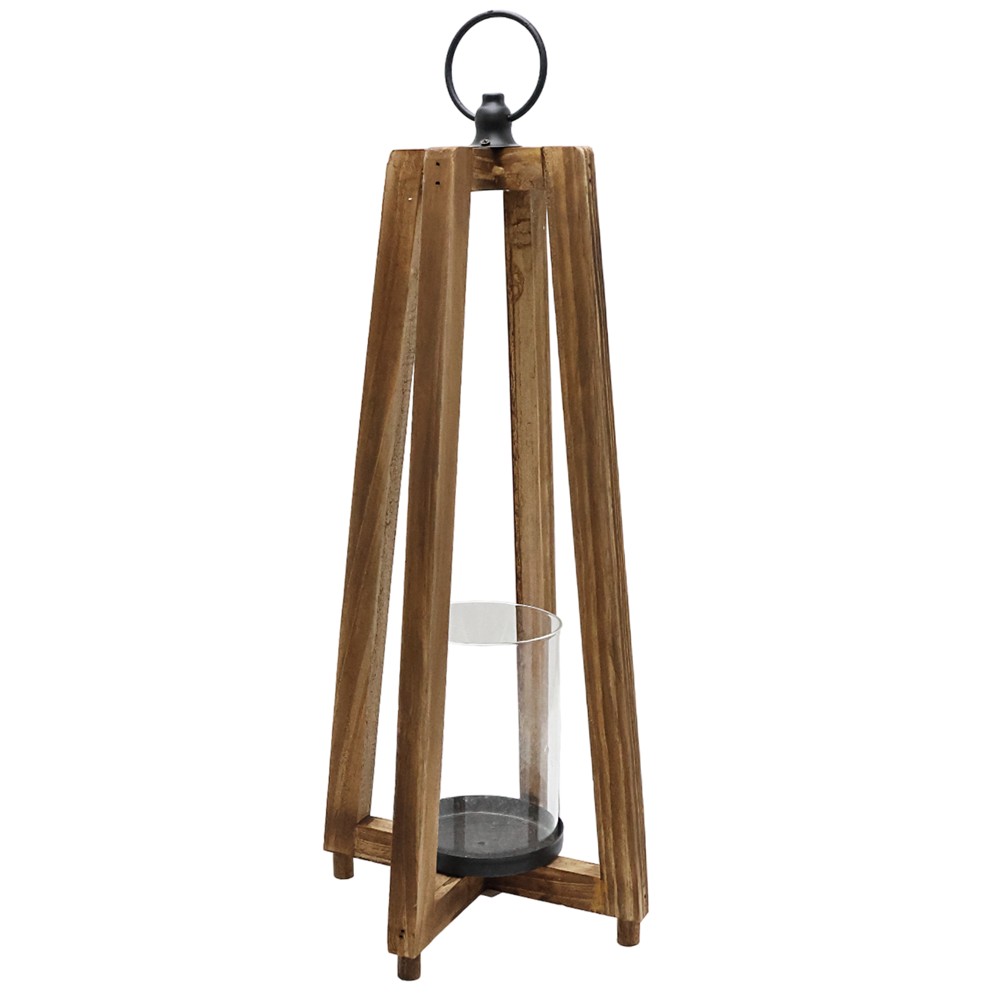 Decorative lantern, metal/wood/glass, brown, 17xH48 cm