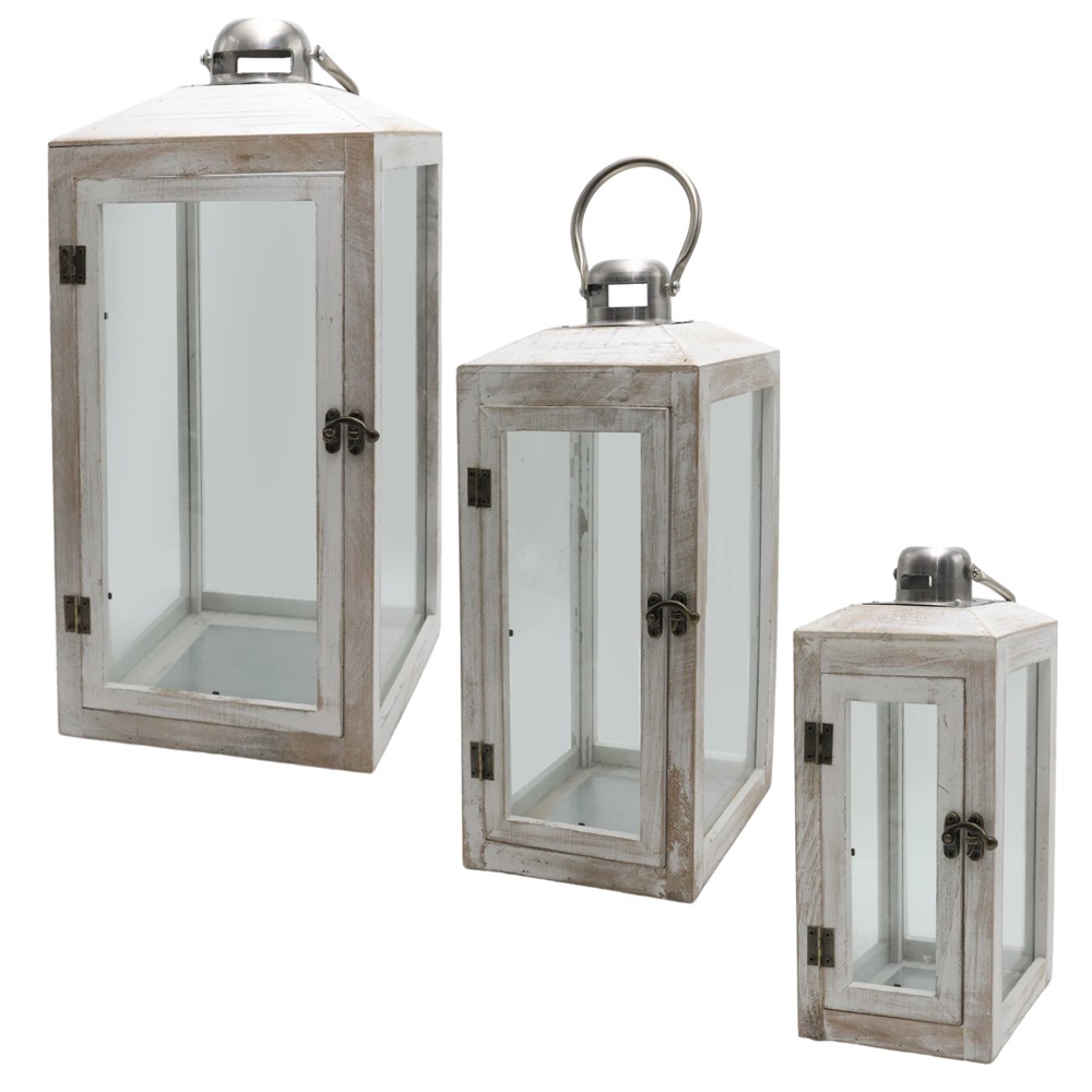 You're reviewing:Decorative lantern set, 3 pieces, metal/glass, White, S-12x30 cm, M-16x38 cm, L-20x44 cm