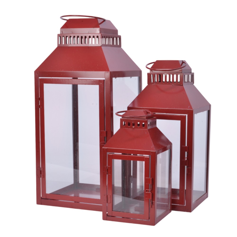 You're reviewing:Decorative lantern, set 3 pieces, metal, red, L:20x20xH45cm, M:16x16xH35cm, S:12x12xH24cm