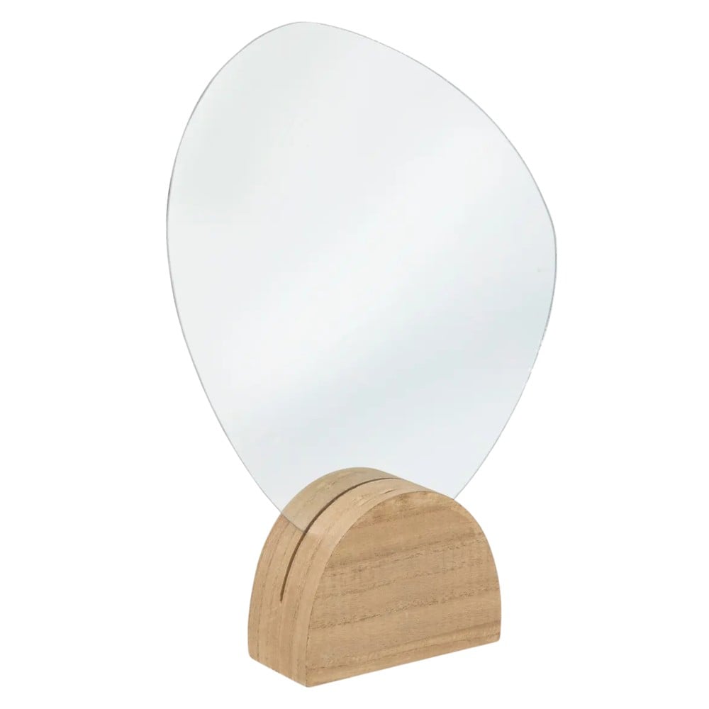Table mirror with a beige MDF base. Ideal mirror to place in the bathroom or dressing room for your makeup. Can be placed in the living room as a decorative space.