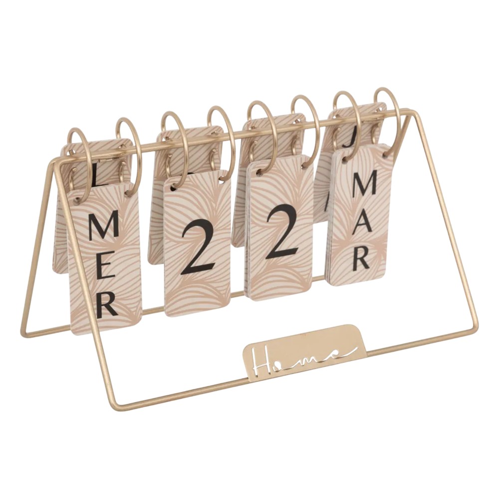 Desk calendar with a modern design. It is made of metal material in gold and beige. Simply turn the tabs until you reach the desired date. Ideal as a useful but also decorative object in your space. Combine it with other items from the same collection for a complete result in your space.