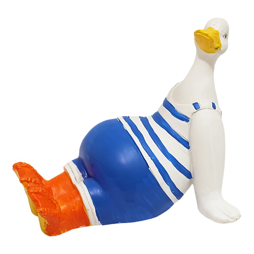 This decorative object is a small Duck and is made of resin, which makes it attractive and durable over time. With the colors: white/blue, which make it an excellent choice to match the style of your environment. With dimensions of 14.5x12xH 14 cm, this decorative object is suitable for placing on tables, wall shelves, or other small spaces at home to add a special and charming feel.