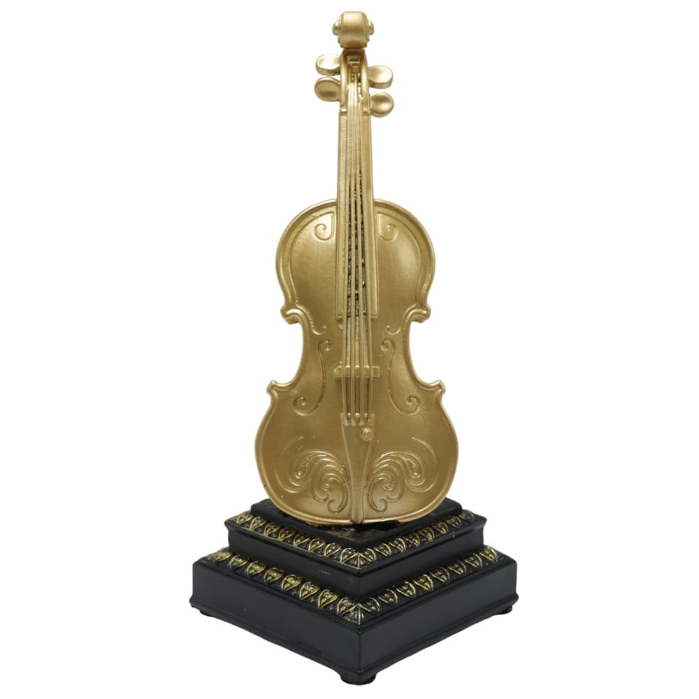 A refined accessory that brings art and music to the heart of your decor. This decorative object in the shape of a violin and in an elegant design, brings an artistic and warm atmosphere to any environment. Made of quality resin and decorated with gold color, this unique piece is ideal for music lovers. With dimensions of 16x16xH28.5 cm, it is perfect for placing on shelves, bedside tables or in the office as a visual point that attracts attention.