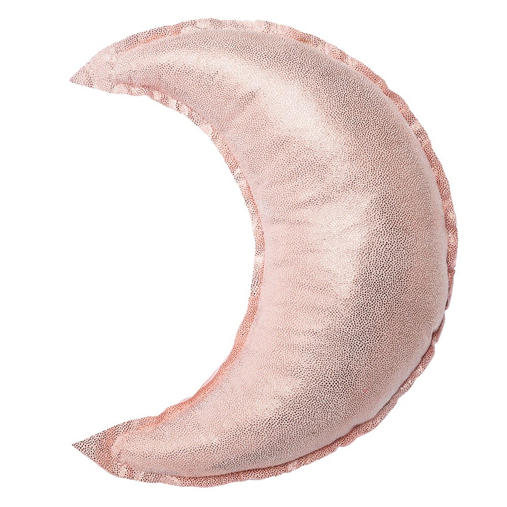 Memory pillow, in the shape of a moon, Made of polyester material with filter filling. Ideal to be used as a decoration in rugs, beds or sofas in the children's room. Gold color.