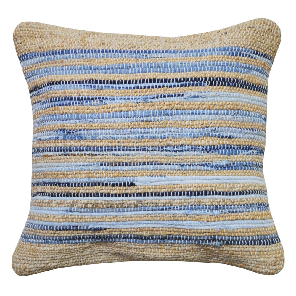 Decorative pillow, 80% jute & 20% cotton, blue/natural, 50x50 cm