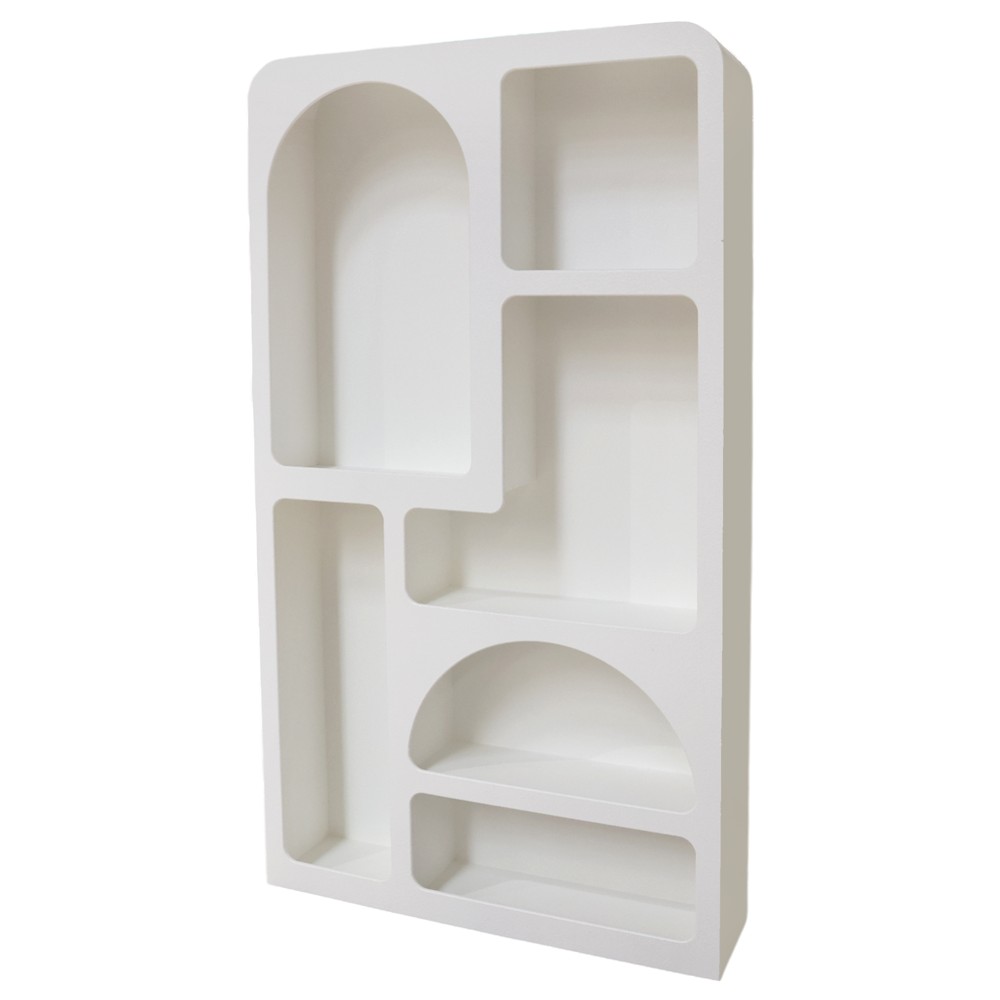 The decorative shelf ''Hera'' will give a minimalist and modern look to your environment. Designed in white MDF material, this shelf easily adapts to all types of furnishings. Its curved and straight sergeants allow for special and personalized decoration. Do not hesitate to make it yours for both home environments and your business.