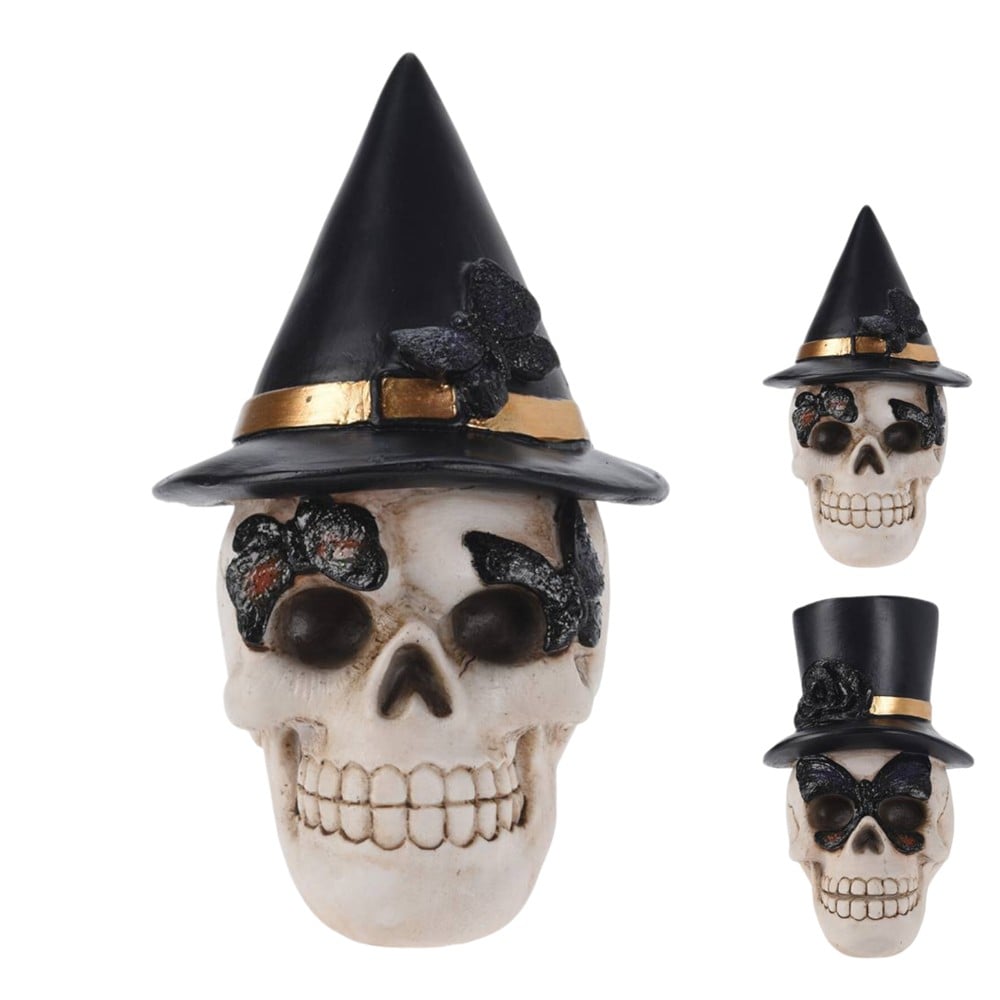 Decorative skull for Halloween, measuring 10x14 cm, is made of polystone and comes in white and black colors. This accessory brings a mysterious and scary atmosphere, being perfect for decorating any environment during the Halloween party.