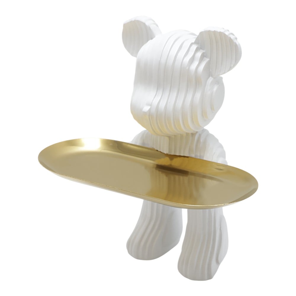 This unique decorative statue in the shape of a bear holding a tray brings a beautiful combination of modern design with functionality. Made of quality resin, in grey color and elegant gold colored details, this statue is perfect for holding small items such as keys, coins or jewelry. A unique choice that attracts attention and will add character to any space.