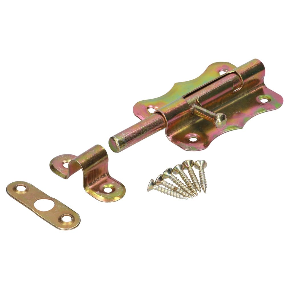 Decorative tower bolt for doors, made of galvanized zinc material, with dimensions of 7x5 cm, in golden color. The constituent material is resistant to use, heavy weights, rust or abrasion. It can be used to close doors, garden gates and furniture shutters, it can be used for right or left handed applications and it can be easily installed.