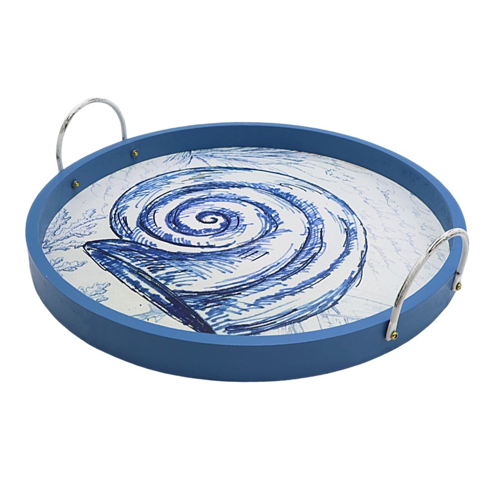 Decorative tray, L, metal, white/blue, 45x8xH45 cm