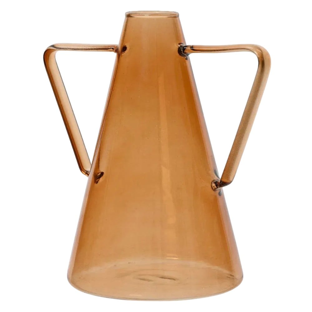 Decorative brown glass vase, with a modern design and warm color that brings style to any space.