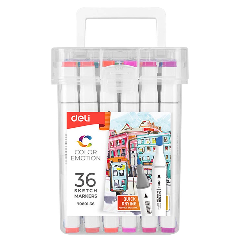 Markers are suitable for professionals and beginners. Markers can be used to draw on paper, cardboard, photographs, photocopies, plastic. They have 2 tips: a thin tip and a wide slanted tip. Quick-drying paint is non-toxic, mixes well with each other, forms smooth transitions and new shades. They are packaged in a textile wallet for storage and holding.