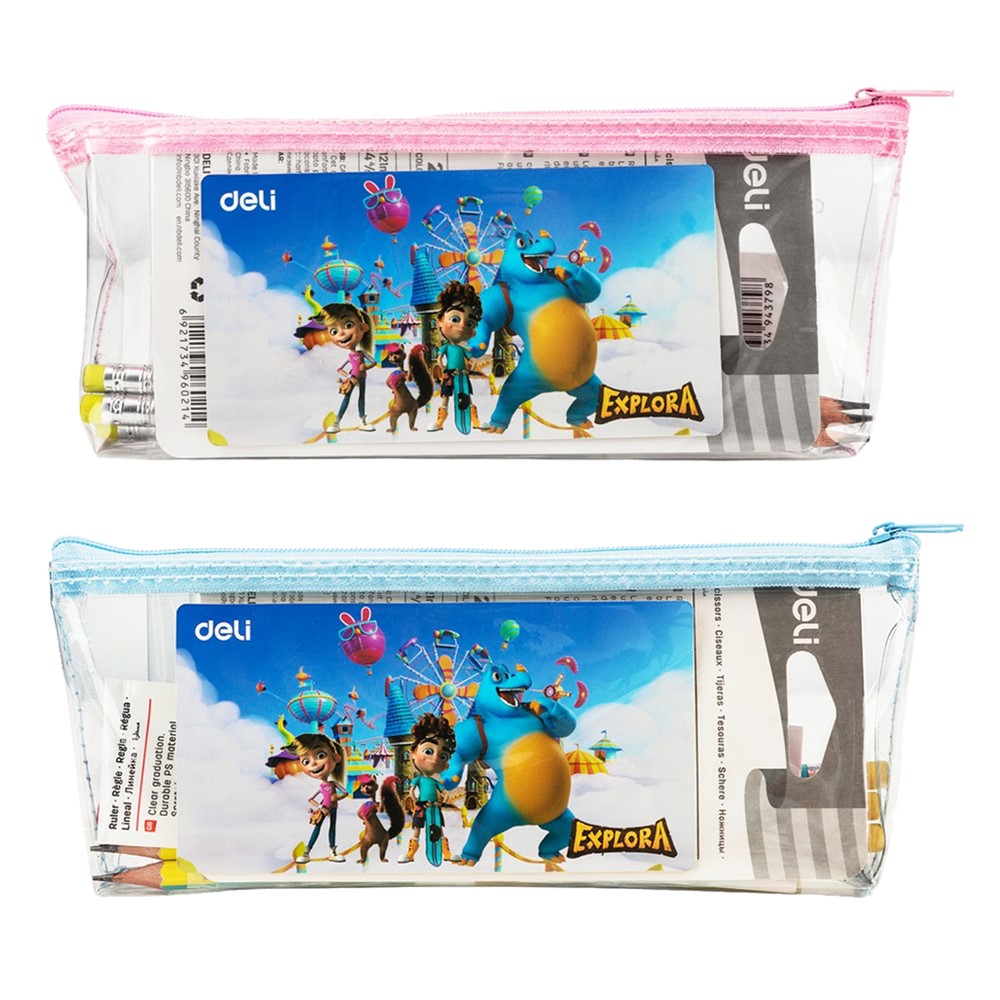 The Deli school set features the fun and colorful design of Explora characters. The set includes 3 graphite pencils, 2 erasers, 1 ruler, 1 pencil sharpener, 1 scissors, 1 glue, 1 schedule board. The sets are in pink and blue. Fun but also functional as it meets all the needs in school.