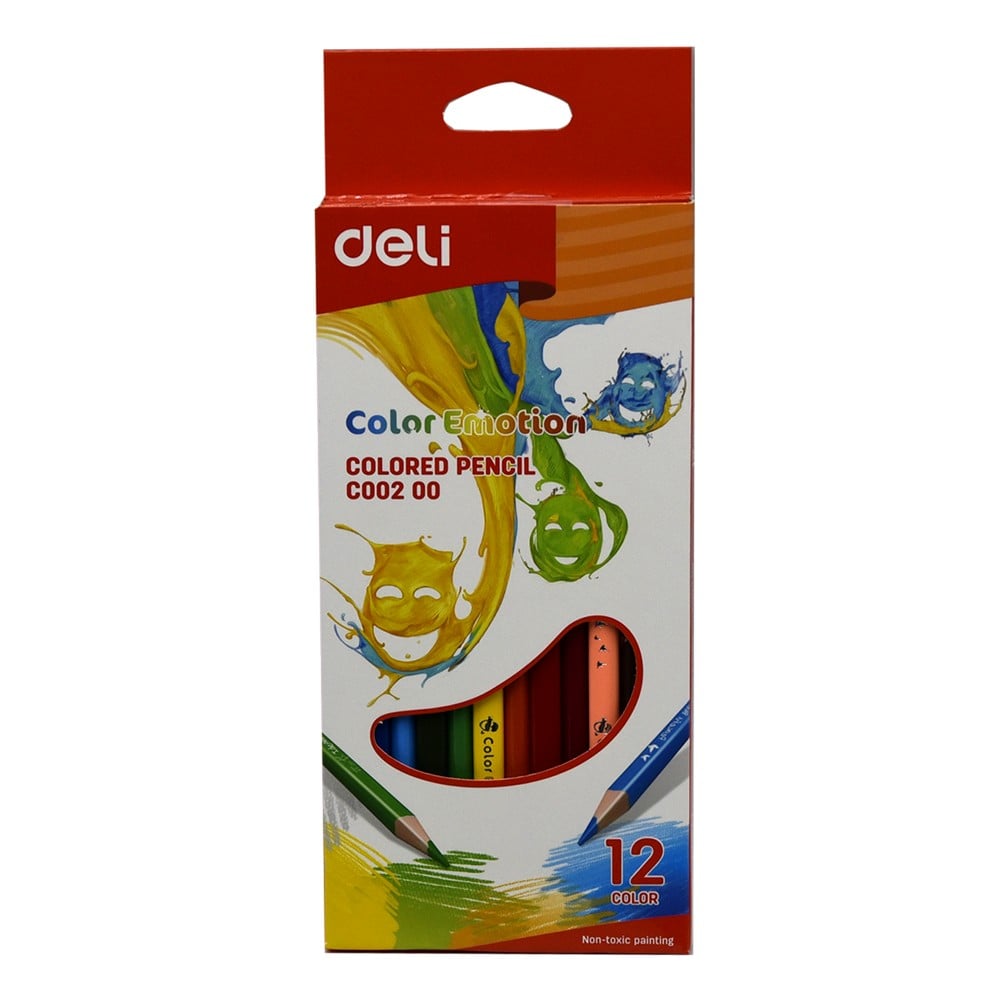 Deli wooden pencils. Deli colored pencils are pencils made of non-toxic synthetic resin material for children. The colors write quickly and are both vivid and full.