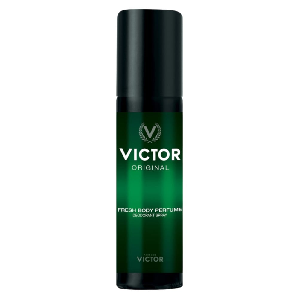 Original Victor perfume in a practical spray deodorant. Fresh and invigorating, it provides a lasting sense of well-being. An "Ever Green" in the field of perfumery, thanks to its delicate invigorating scent.