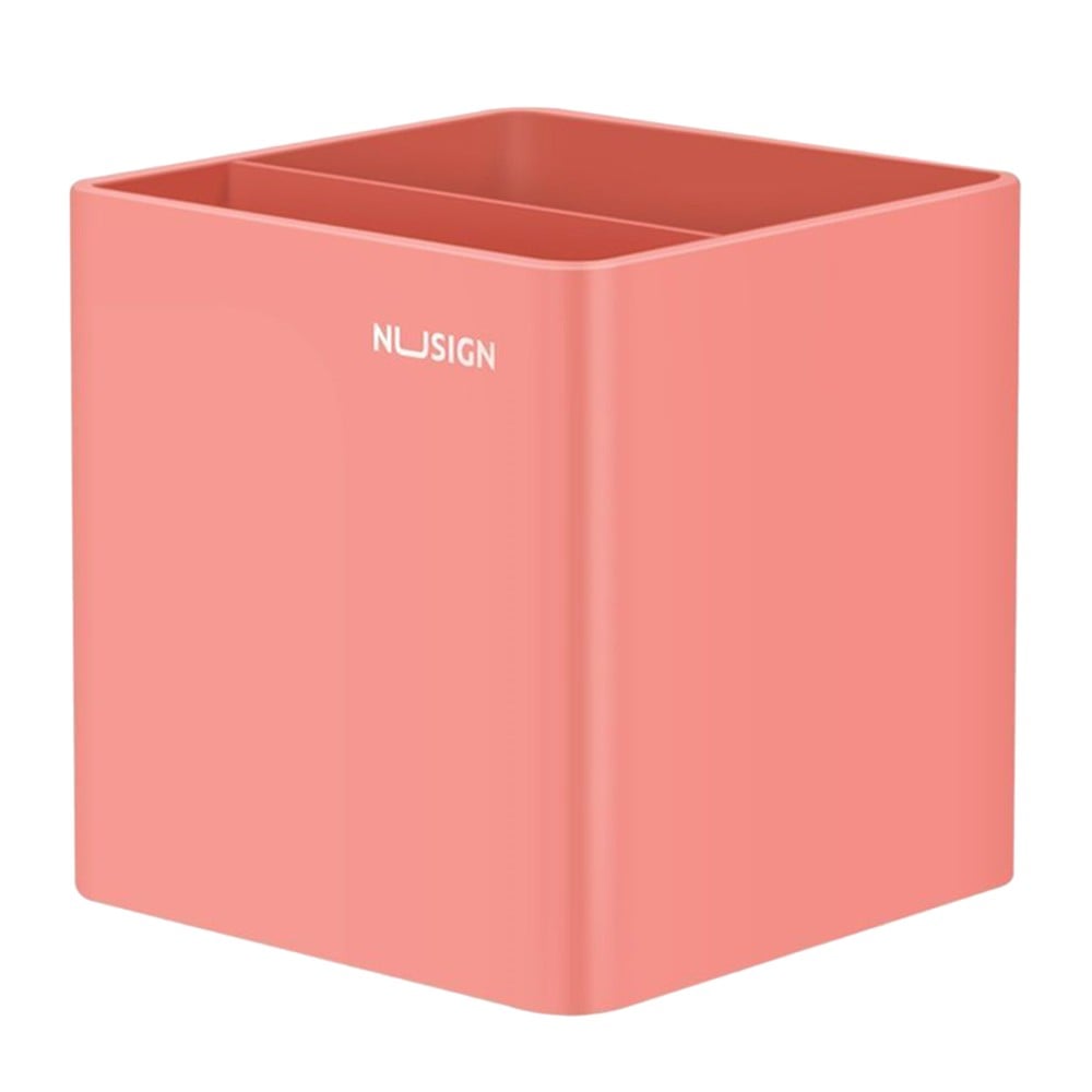 Desk organizer for Deli NU pens, made of pink plastic, with dimensions of 8.4 x 8.4 x 8.6 cm. Ideal for keeping pens and other small materials in one organized place.