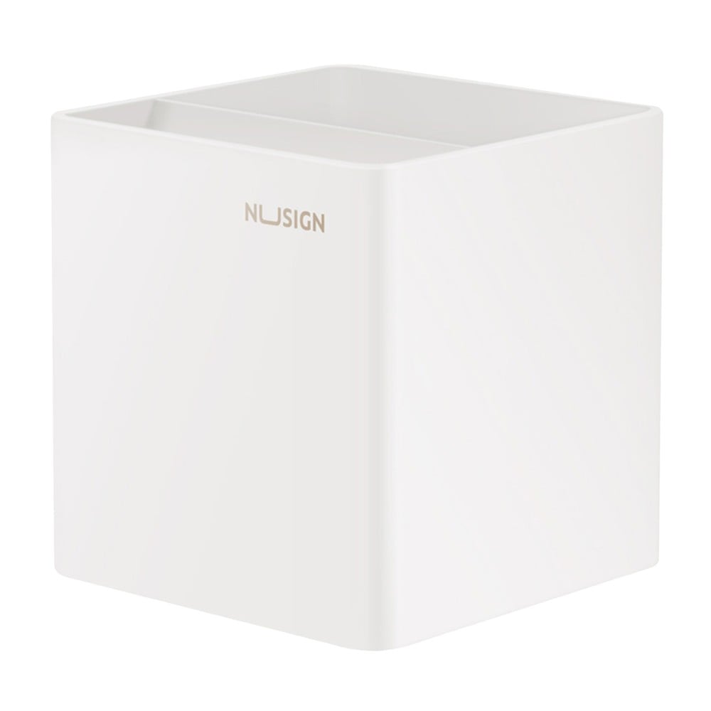 Desk organizer for Deli NU pens, made of white plastic, with dimensions of 8.4 x 8.4 x 8.6 cm. Ideal for keeping pens and other small materials in one organized place.