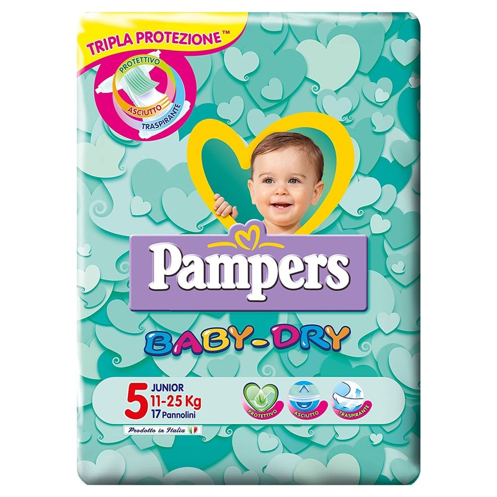 Diapers for babies, Baby Dry, Pampers, cotton, Junior, no. 5, 11-25 kg, 16 pieces, with tape sticker