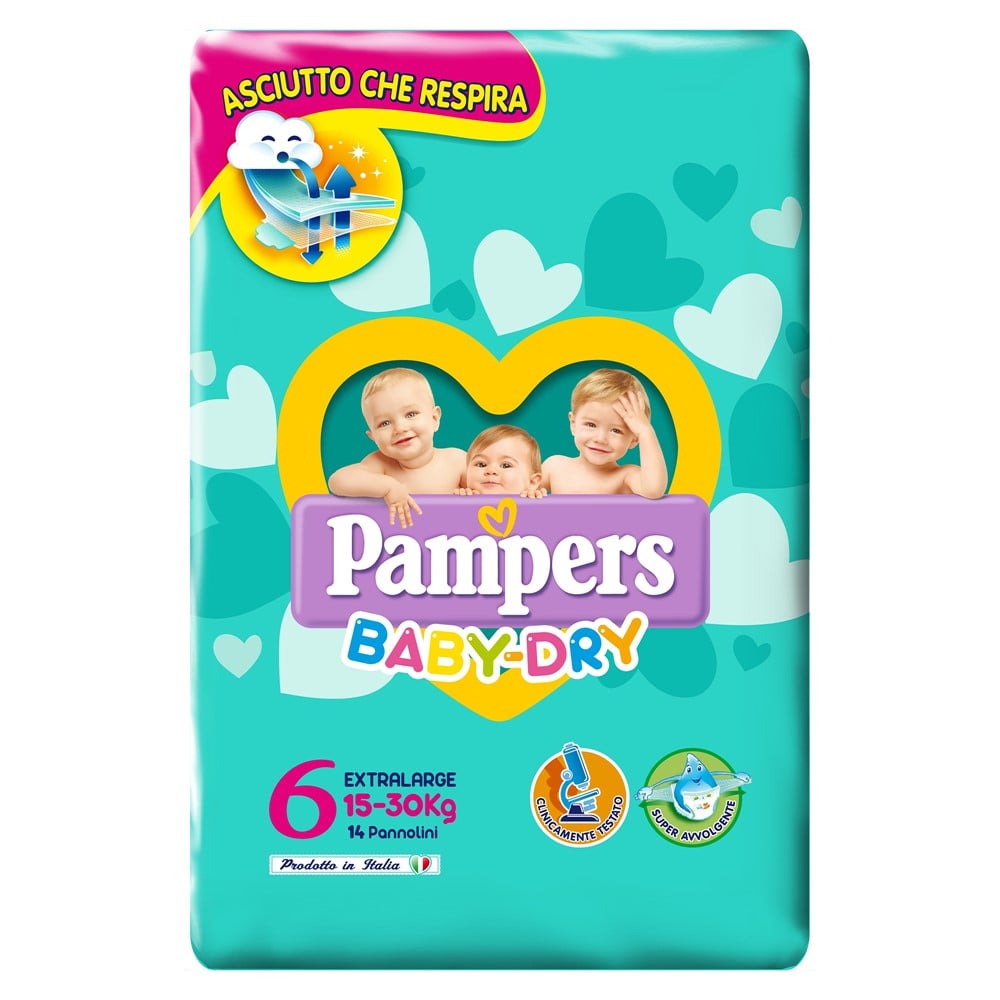 Diapers for babies, Baby Dry, Pampers, cotton, XL, no. 6, 15-30 kg, 14 pieces, with tape sticker