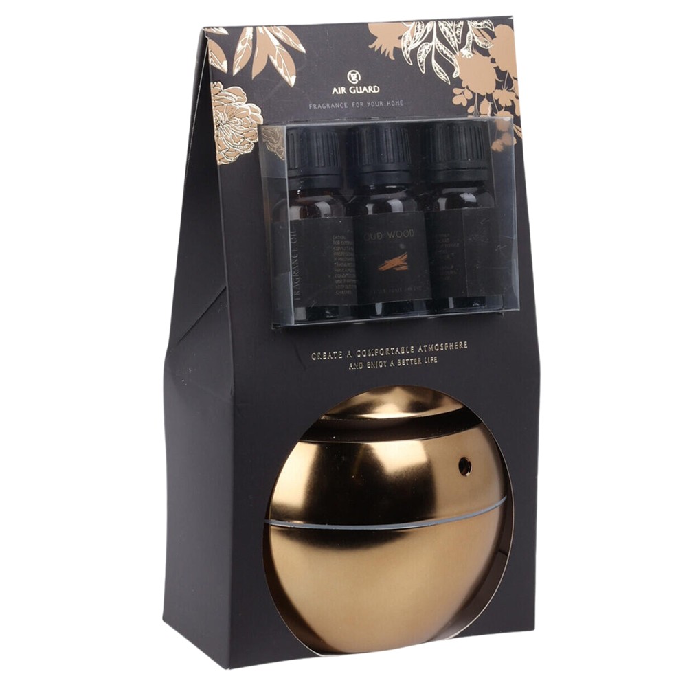 The air freshener with 3 different aromas will keep your home environment always fresh. Conceived in gold colored glass and finished with a mirror effect, this diffuser is not only practical but also modern. The set consists of a diffuser and 3 refills of 10 ml each with 3 different scents.