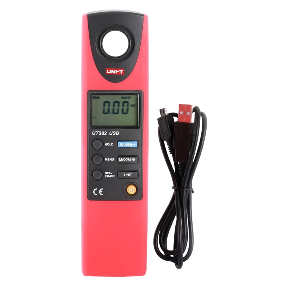 The UT380 Series light meters measure light intensity and display the results in Lux or HR. It has a high sampling rate of 100/s. The low power consumption of the UT380 series allows for up to 200 hours of continuous operation. Results can be stored within the device and transferred to your PC for further analysis.
