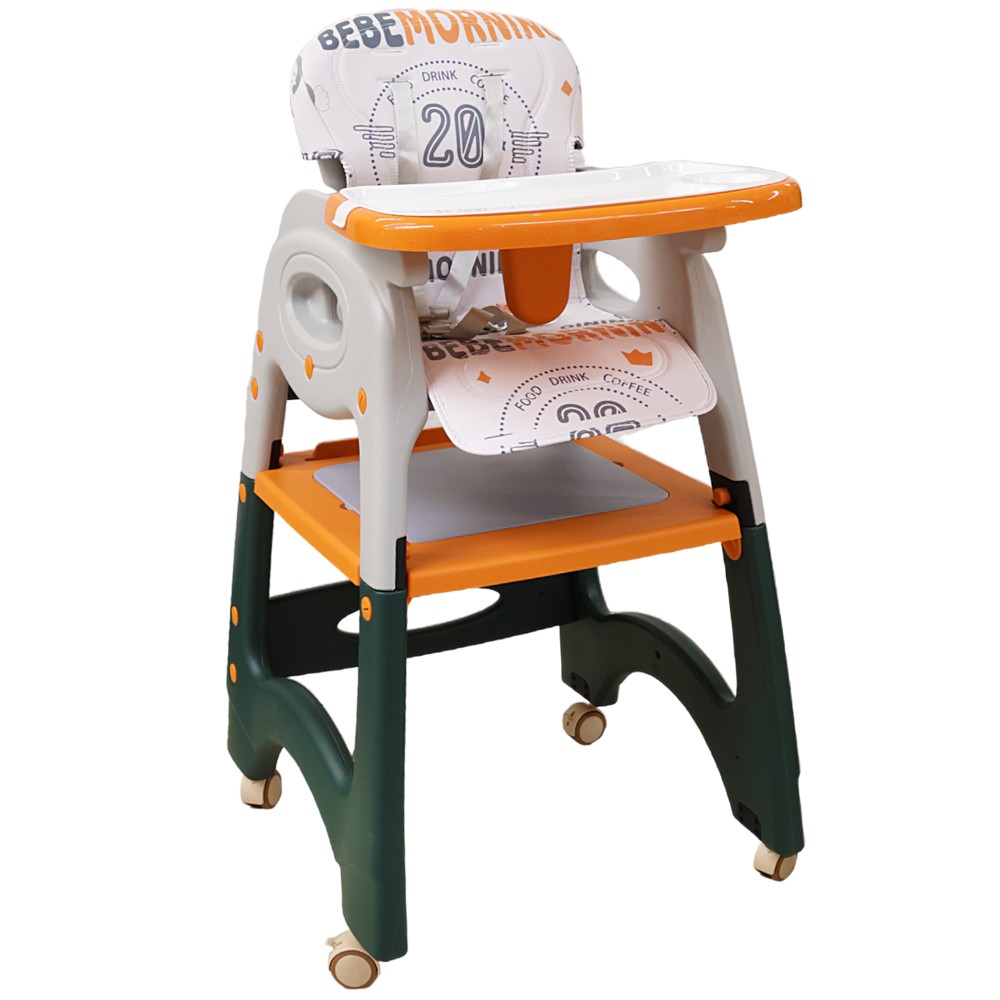 The children's dining chair is an excellent solution for feeding your child comfortably and safely at home or outside. Made of high-quality plastic, this chair offers durability and ease of use. With a combination in white and orange colors, it is beautiful and portable, easy to clean and store.The children's dining chair is ideal for family mealtimes, ensuring comfort and safety for your child during mealtimes.