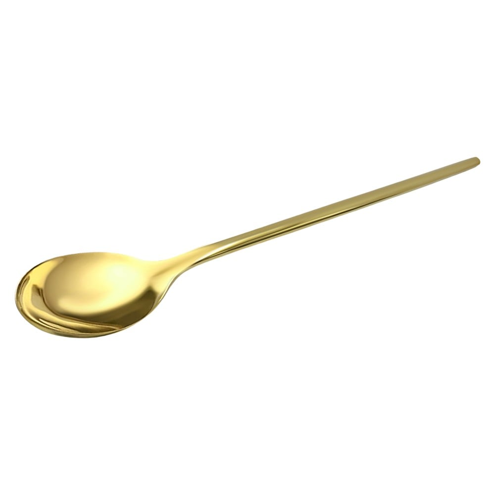 This modern soup spoon is a must-have for any kitchen. Its unique gold finish adds a touch of elegance, while the stainless steel construction makes it durable and stain-resistant. With a length of 20.2 cm, it's perfect for everyday use.
