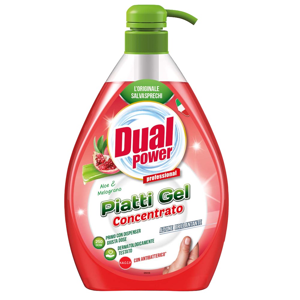 Detergent for manual dishwashing, with neutral pH level, Aloe Vera essence and pomegranate extract. It is used to remove the food and grease from the dishes, while keeping the hands soft and moisturized and eliminating unpleasant odors. The dosage is 10 ml of detergent in 5 l of water.