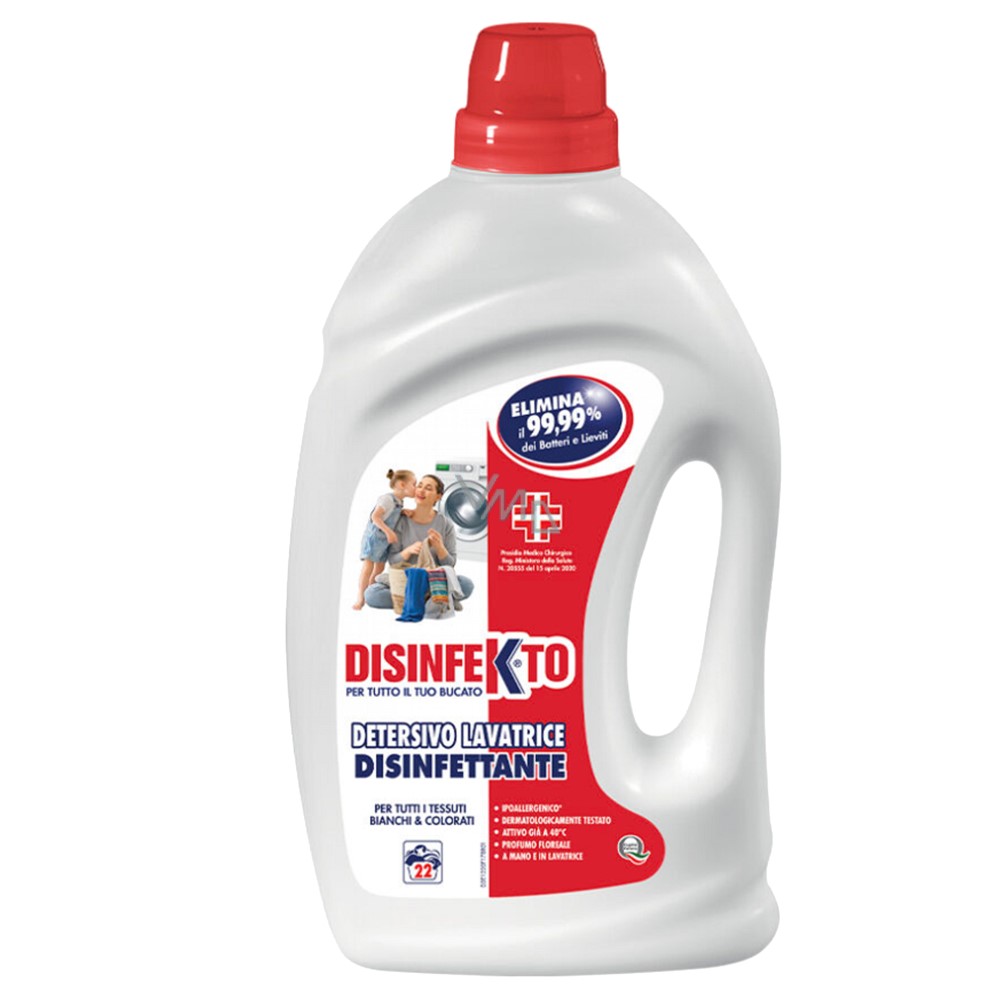 Disinfekto sanitizing additive without bleach is ideal for washing all white and colored garments, especially at low temperatures, because it helps to remove germs and bacteria. Acts in depth, respects fabrics and colors. It is active already at 40C. It is advisable to use Disinfekto additive Sanitizing in addition to the detergent that is usually used, both for the garments of babies, children and the elderly, and for the clothes of the whole family, underwear, sheets, towels and sportswear because it helps to remove germs and bacteria. Keep Disinfekto additive sanitizing out of the reach of children.