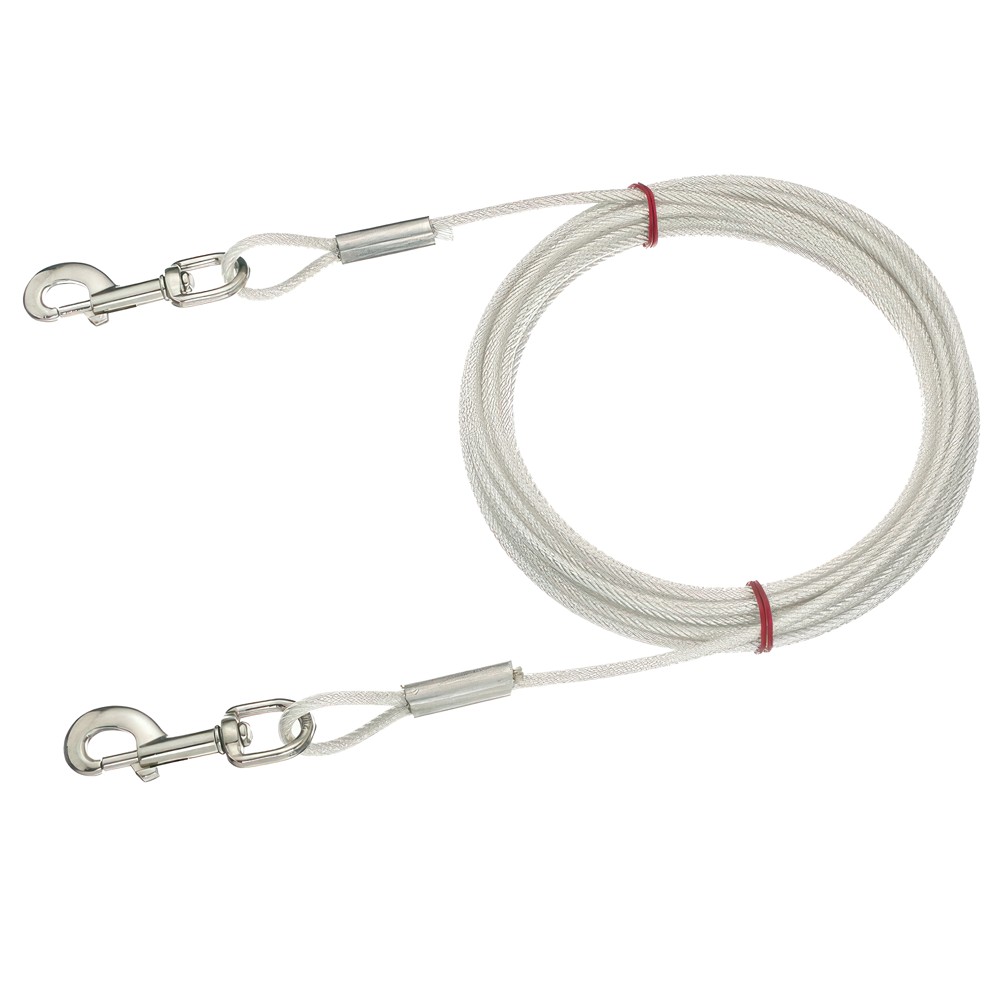Reflective cable for a higher visibility. - solid, resistant and weatherproof - with anti-tangle swivelling carabiners - quick release - this cable consists of a galvanized steel rope with vinyl covering and two heavy anti-tangle swivelling carabiners - useful in the garden but also on a journey to secure and protect your dog