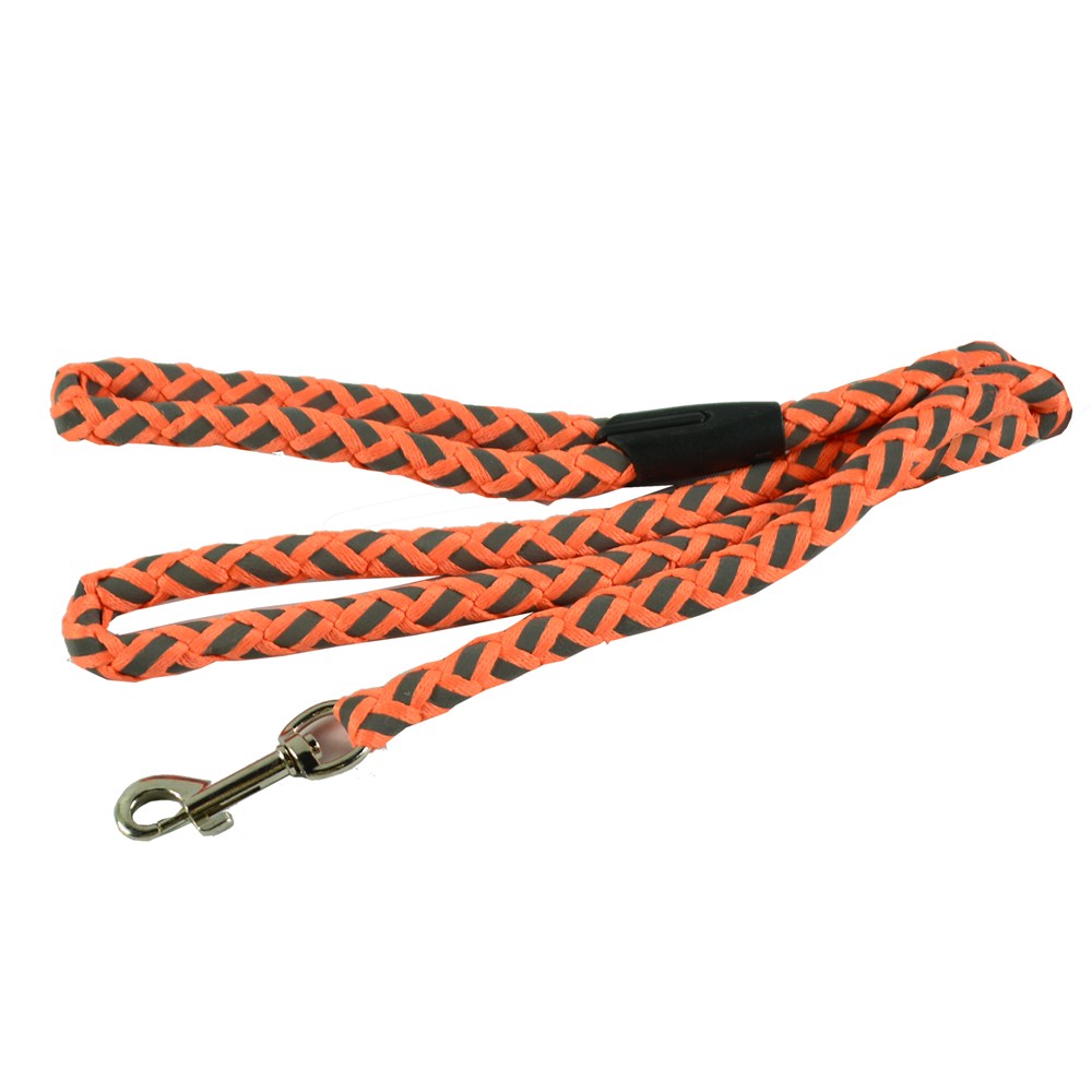 The dog guide cord with an adjustable length. Choose the adjustable cord for a custom fit for your dog. The rope is constructed of a phosphor-stripe, has a metal clasp with a adjustable rim and a metal ring in D.