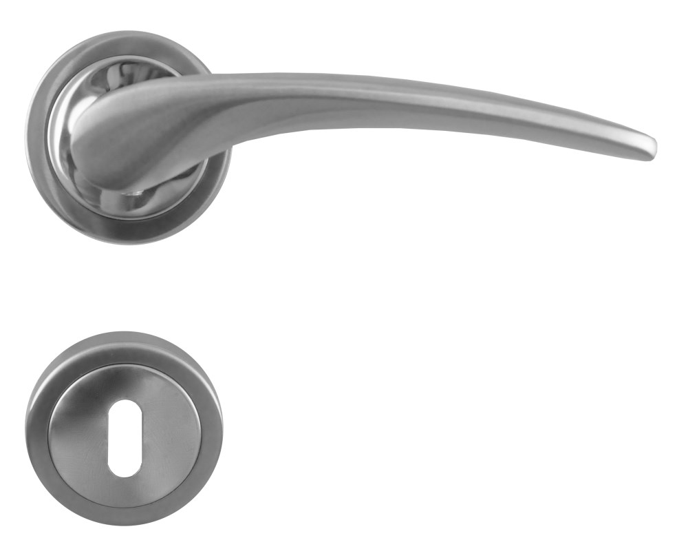 This door handle 135x60x19mm, with grey color widely used for interior doors. It is a qualitative and resistant handle, her body is composed of solid steel material, including accessories for instalation.