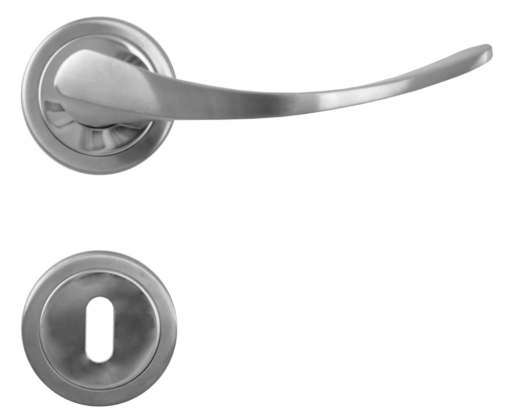 This door handle 135x60x19mm, with grey color widely used for interior doors. It is a qualitative and resistant handle, her body is composed of solid steel material, including accessories for instalation.