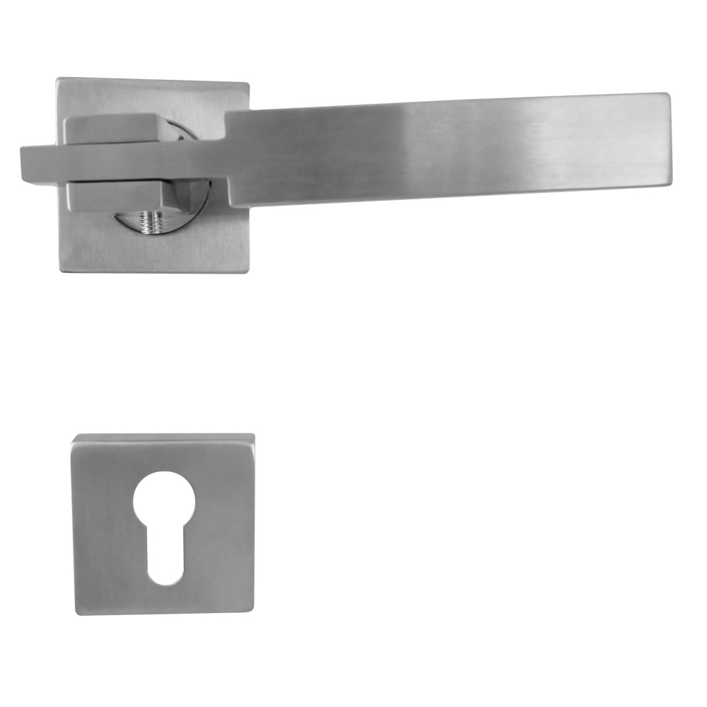 This door handle 135x60x19mm, with grey color widely used for interior doors. It is a qualitative and resistant handle, her body is composed of solid steel material, including accessories for instalation.