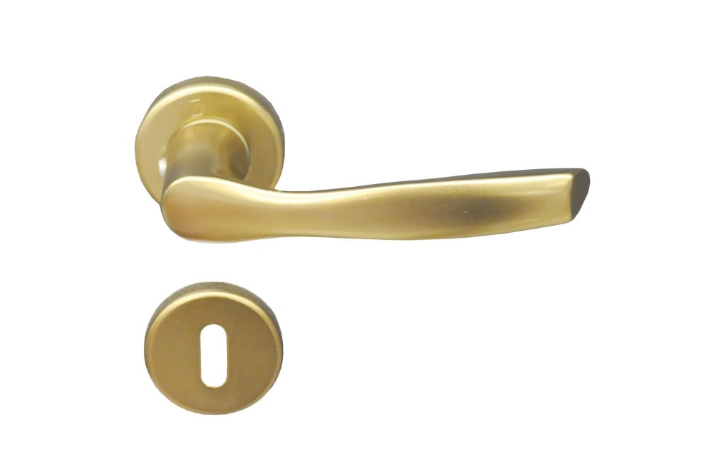 This door handle , with Bronze color widely used for interior doors. It is a qualitative and resistant handle, her body is composed of solid steel material, including accessories for instalation.