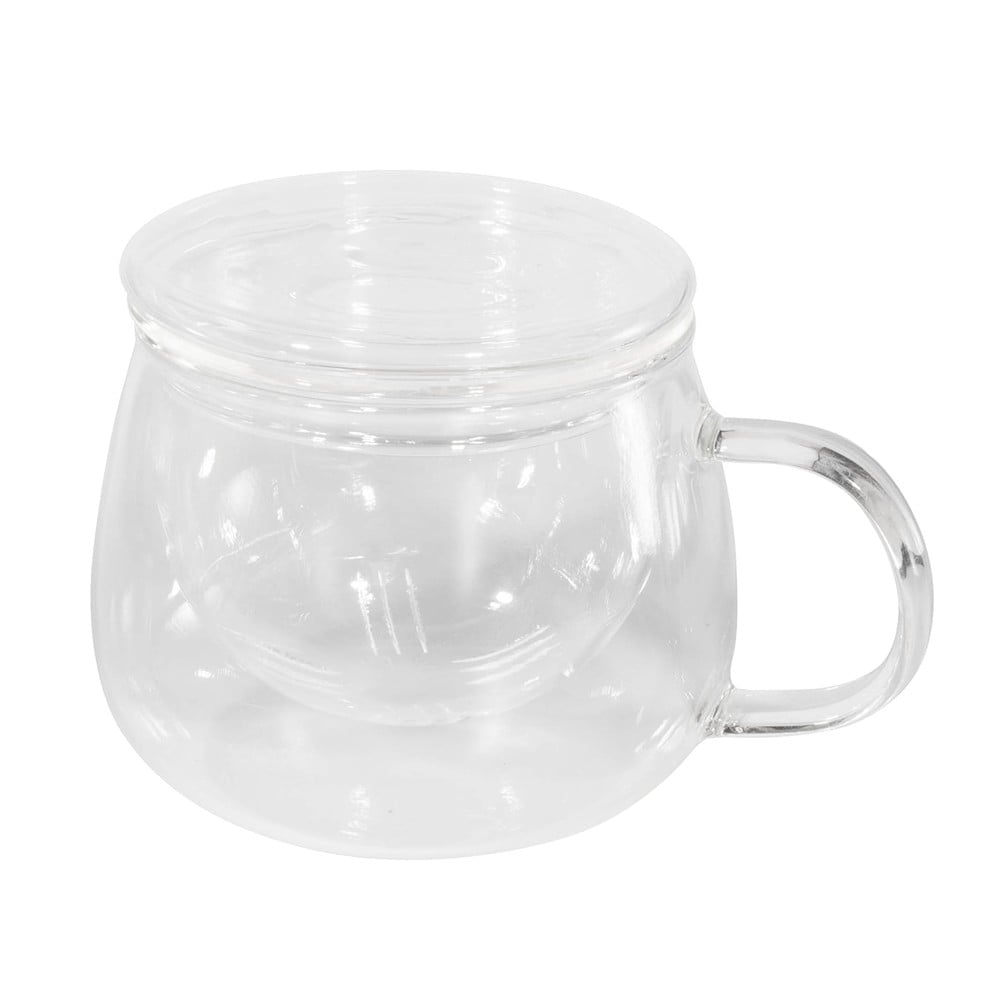 The double tea cup, made of transparent glass, has a height of 8 cm and a capacity of 350 ml. This mug offers an excellent choice for enjoying tea comfortably. The glass materials make it durable and suitable for daily use, and the transparent design allows the user to see the liquid inside the cup. This dimension makes it suitable for use at home, in the office or in any other environment.