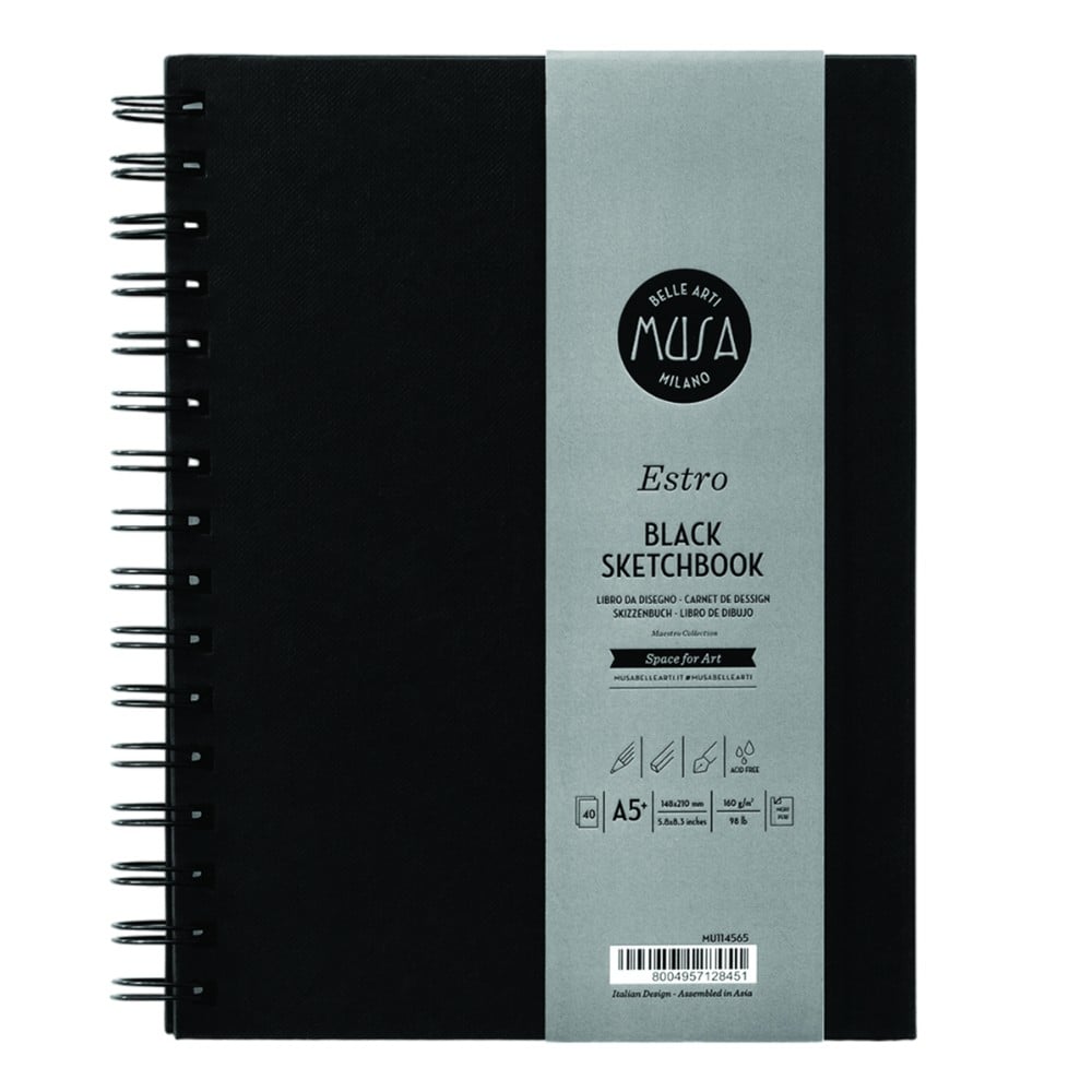 Drawing notebook Musa is a high-end drawing paper, produced with 100% cellulose. Extra white, free of acids and optical whitening agents for high preservation over time. Its particular fine grain has been specifically designed to obtain excellent definition and clarity of features. It is ideal for dry techniques such as pencils, charcoal, pastels, markers... but the high weight also makes it suitable for some wet techniques such as gouache, ink and for light watercolor works. Born to best respond to the needs of artists and amateurs.