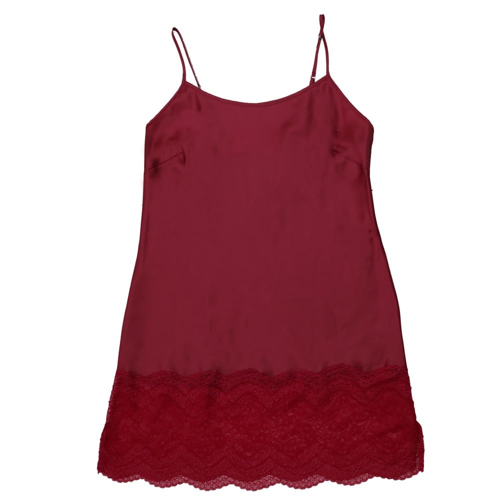 Dress with straps for sleeping, made of satin material in red color, in the bottom part there is a lace which makes it more special.