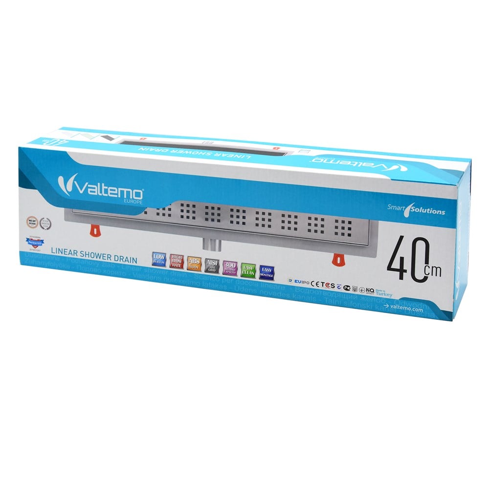 Straight channel body for installation in screed, with flange and Seal System sealing tape, for creating a tested and certified connection of the TECEdrainline shower channel to the composite sea.