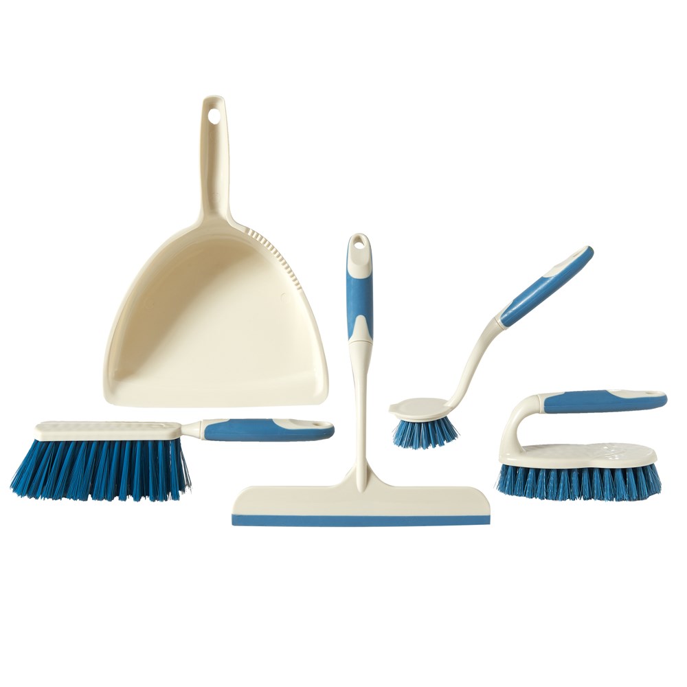 Set of litter boxes, very functional. It can be used for any possible type of cleaning, from cleaning garbage to cleaning stains, floors, walls, etc. This set makes your life easier. The set contains a mop, a mop brush, a window squeegee, a brush for cleaning dishes, and a brush for cleaning carpets.